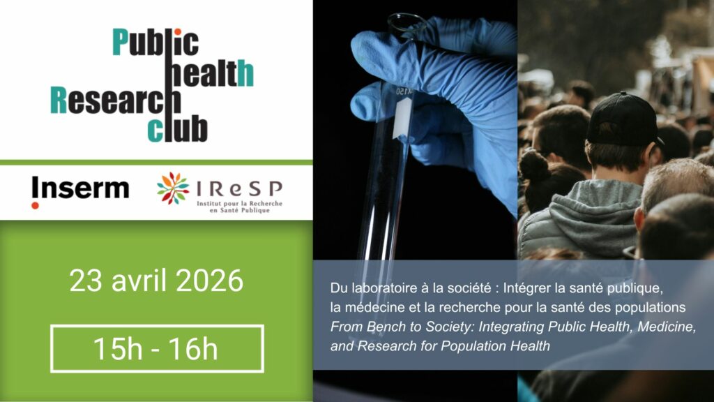 L’IReSP et l’Institut de Santé Publique (ISP) de l’Inserm vous invitent à la cinquième édition du Public Health Research Club, un webinaire consacré aux grands enjeux actuels de la recherche en santé publique, en France et à l’international.