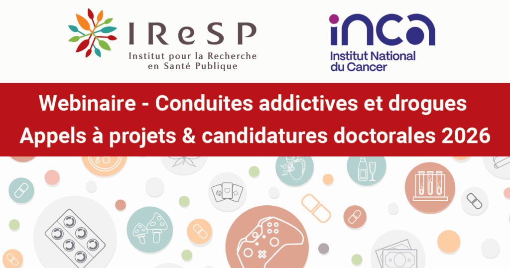 Dans le cadre du lancement des appels à projets de recherche et à candidatures doctorales 2026, l’IReSP et l’INCa organisent un webinaire de présentation consacré aux enjeux de recherche sur les conduites addictives et les drogues le lundi 2 février de 16h à 17h30.